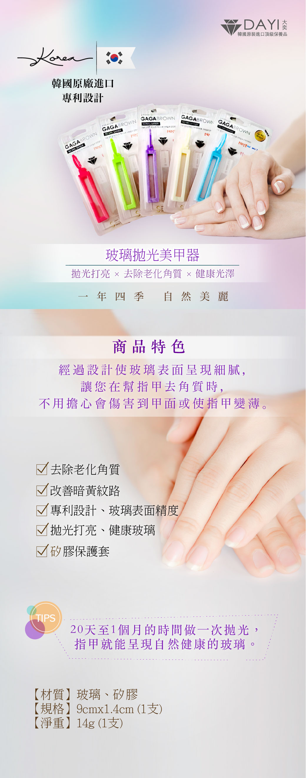 ✔功效:20天至1個月的時間做一次拋光,指甲就能呈現自然健康的玻璃。